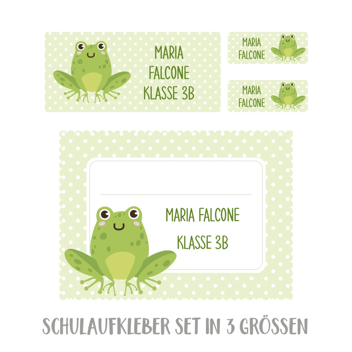 Frosch oder Prinz, das ist hier die Frage! Der fröhliche Frosch ziert unsere individuell bedruckten Schulaufkleber und bringt den kleinen Schulanfängern gute Laune mit!